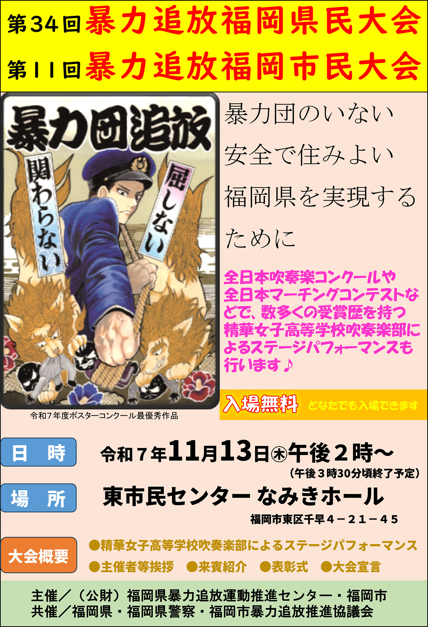 第34回暴力追放福岡県民大会・第11回暴力追放福岡市民大会の開催について